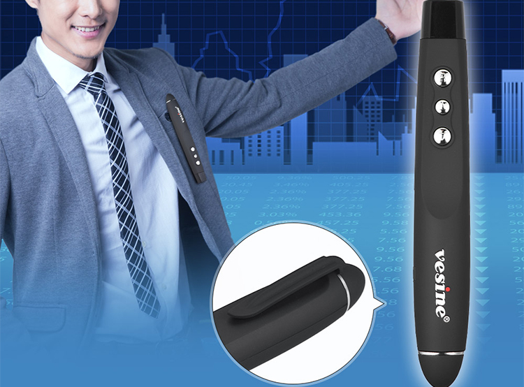 Ngoài những tính năng cơ bản, bút trình chiếu Vesine VP-101 còn được tích hợp nhiều tính năng đặc biệt như lật trang lên xuống và để màn hình trắng, cho phép bạn đưa ngừơi nghe cuốn hút vào bài thuyết trình hơn.